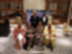 The First Born Sheba III. The Queen of Sheba and His Royal Majesty King Michael II, Her Majesty's Father. In the background are the three other children of HRM King Michael II. In the back (in red) is HRH Prince Marcus the younger brother of the Queen of Sheba. In the foreground are their half-siblings Princess Makibah and Prince Nekaa the youngest at the front both in golden regalia.